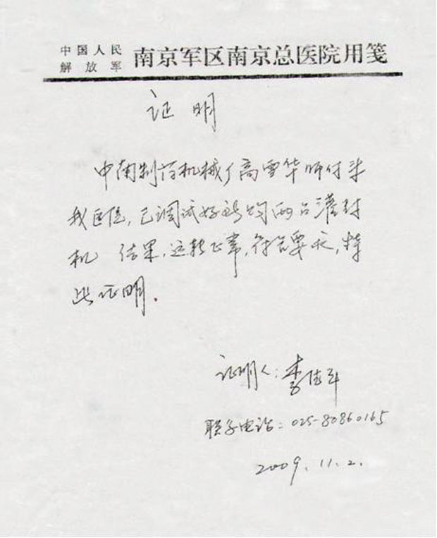 2009年10月,南京軍區(qū)南京總醫(yī)院向我廠購(gòu)進(jìn)ALG 5ML 安瓿拉絲灌封機(jī)一臺(tái),ALG 10ML 安瓿拉絲灌封機(jī)1一臺(tái),我廠調(diào)試人員于2009年11月2日到用戶調(diào)試并培訓(xùn)操作人員,機(jī)器現(xiàn)已正常投入使用。