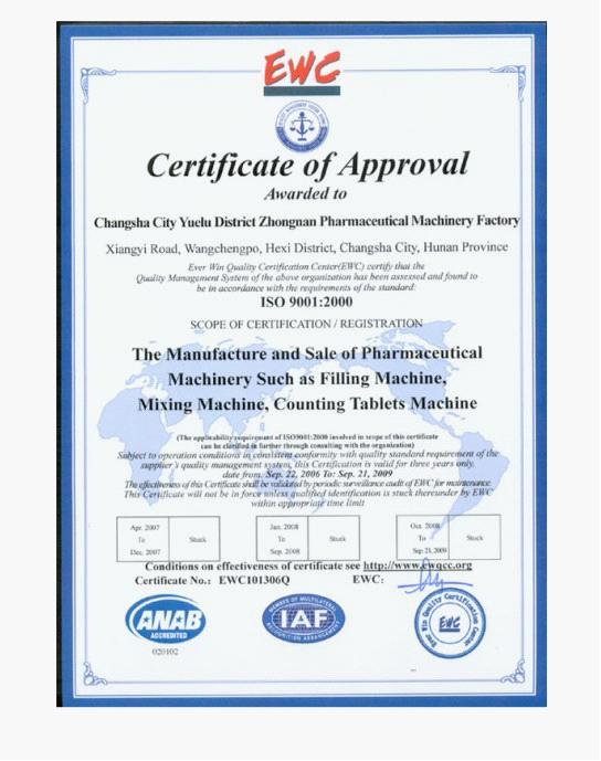 經(jīng)過(guò)3年的努力,我廠認(rèn)真按國(guó)際6S規(guī)范辦事,終結(jié)碩果。2006年9月,EWC國(guó)際認(rèn)證中心對(duì)我廠全方位嚴(yán)格評(píng)審,一舉通過(guò)ISO9001:2000質(zhì)量標(biāo)準(zhǔn)全部適用條款。該證書的取得,標(biāo)志著我廠全面質(zhì)量管理從此躍上了一個(gè)嶄新的臺(tái)階,也為我廠產(chǎn)品走向世界鋪出了一條綠色通道。
