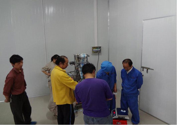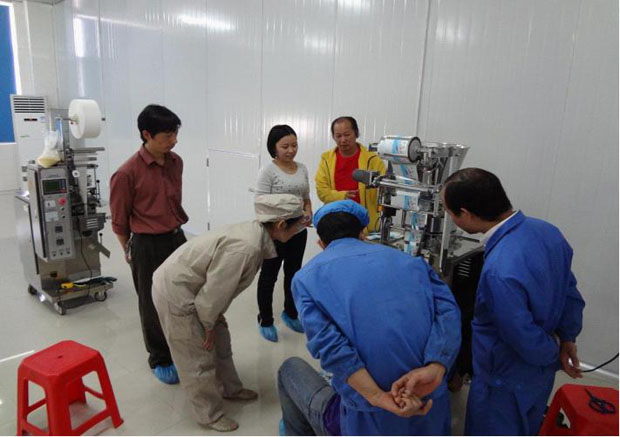 圖為千金養(yǎng)生坊健康品股份有限公司生產部黃玲芳主任率員工驗收ZKB-K顆粒包裝機實況。