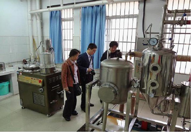 湖南中醫(yī)藥大學(xué)開設(shè)了生物工程等制藥專業(yè)。2009年,該專業(yè)技術(shù)負(fù)責(zé)人楊崧教授(男,帶眼鏡者),在考察了全國多家制藥機(jī)械廠家后,從我廠購進(jìn)了一批實(shí)驗(yàn)室制藥設(shè)備,組建模擬藥廠。該院模擬藥廠因設(shè)計(jì)合理,管理規(guī)范,許多大專院校模擬藥廠、制藥實(shí)驗(yàn)室負(fù)責(zé)人絡(luò)繹不絕到該院參觀取經(jīng)。圖為2011年9月我廠董事長、總經(jīng)理陪同湖南科技學(xué)院張敏主任(女,帶眼鏡者)一起參觀湖南中醫(yī)藥大學(xué)模擬藥廠實(shí)況。