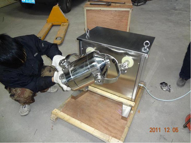 為達(dá)到三維混合,制造關(guān)鍵:在于使幾個運動關(guān)節(jié)靈活,且耐用。我廠改進(jìn)后的SWH型三維混合機(jī),運行靈活,轉(zhuǎn)動均勻,無停頓死點。因而長期受到用戶歡迎,圖為我廠工人對SWH-10型三維混合機(jī)作出廠檢測調(diào)試。