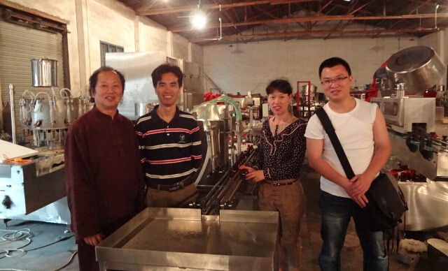 公司董事長(zhǎng)何家寧先生的學(xué)生,湘雅附二醫(yī)院藥學(xué)教授,碩士研究生導(dǎo)師李健和教授,在我公司購(gòu)買(mǎi)100ml液體自動(dòng)灌裝,旋蓋,鋁箔封口,貼標(biāo),打碼生產(chǎn)線(xiàn)。2014年5月底,李教授到我公司驗(yàn)收設(shè)備。