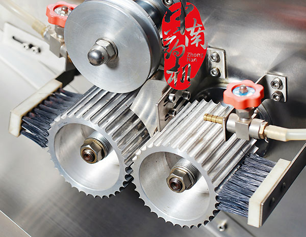 第一、將調(diào)配均勻的團(tuán)狀藥料,取適量投入擠壓器中,進(jìn)行出條,然后將藥條逐根橫放在制丸機(jī)槽中直接搓制成丸,在使用制丸機(jī)前,首先要取下上蓋殼,并在各油眼處滴加數(shù)滴無水分食用油,再用醫(yī)用酒精擦洗四根滾軸和與藥丸接觸的部分,進(jìn)行消毒處理。