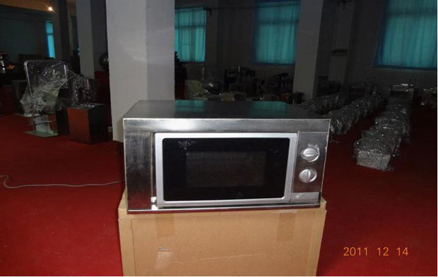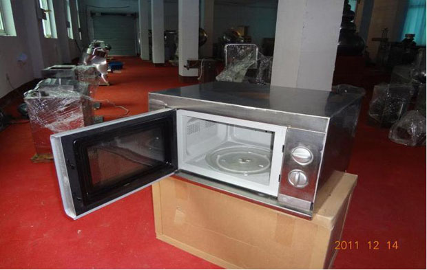 烘箱開門外貌,右側(cè)為紅外量旋鈕和微波時間控制旋鈕