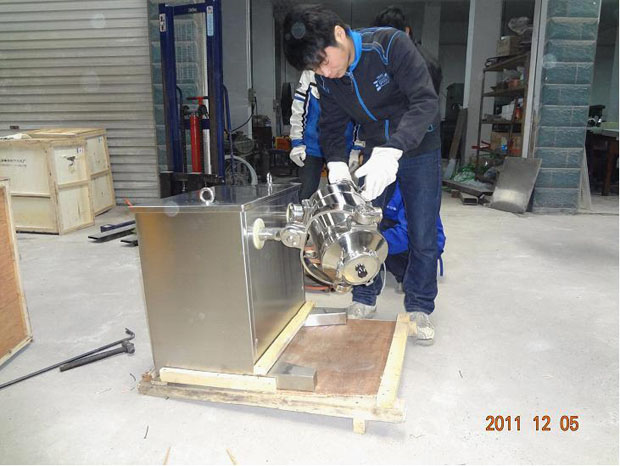 為達(dá)到三維混合,制造關(guān)鍵:在于使幾個(gè)運(yùn)動(dòng)關(guān)節(jié)靈活,且耐用。我廠改進(jìn)后的SWH型三維混合機(jī),運(yùn)行靈活,轉(zhuǎn)動(dòng)均勻,無停頓死點(diǎn)。因而長(zhǎng)期受到用戶歡迎,圖為我廠工人對(duì)SWH-10型三維混合機(jī)作出廠檢測(cè)調(diào)試。