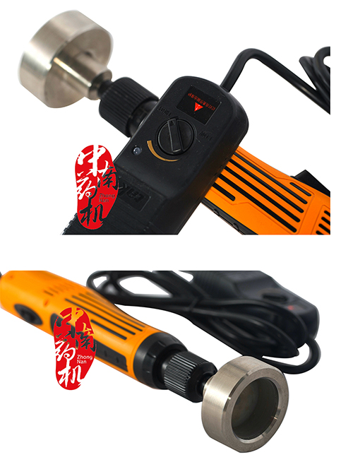 我廠成功解決了這一難題。手持式電動旋蓋槍由旋蓋槍體、旋蓋頭、多檔變壓器三部分組成。工作時,旋蓋頭罩在瓶蓋上方,旋蓋頭與旋蓋槍體相連,按動開關(guān),旋蓋頭旋轉(zhuǎn),稍向下用力,0.3-0.5秒鐘即可將瓶蓋旋緊。旋蓋的松緊可調(diào)節(jié)旋蓋槍體上的扭矩調(diào)節(jié)螺母實現(xiàn)。由于扭矩恒定,無論何種年齡、性別、體質(zhì)的工人操作,也無論工作時間長短和情緒變化,旋蓋的松緊都是一致的,從而保證了產(chǎn)品質(zhì)量。